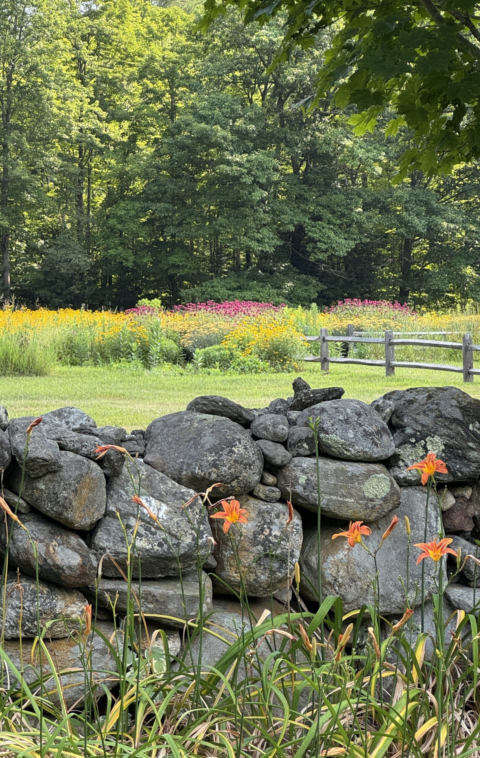 Stone wall and wildflowers along the walking route. Photo by Laurie from Burtonsville, MD